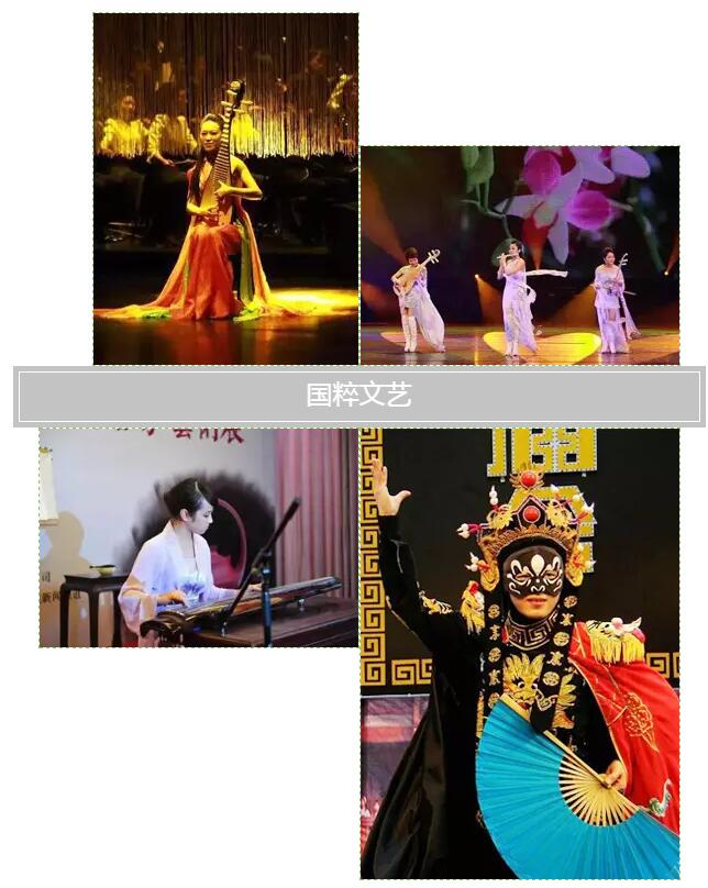 经典古曲、鼓舞、茶道、京剧、变脸、书画、礼仪等国粹梦幻呈现