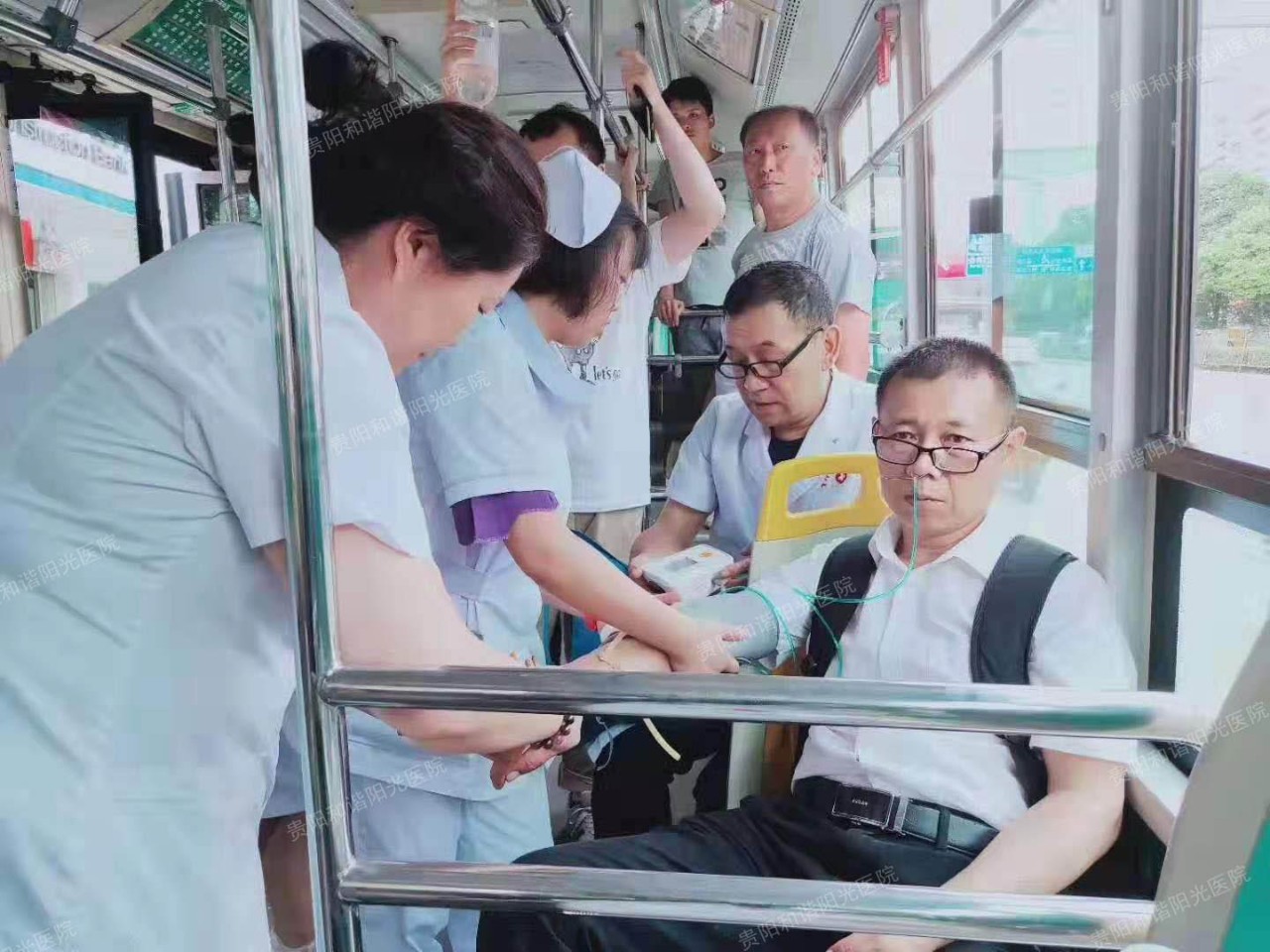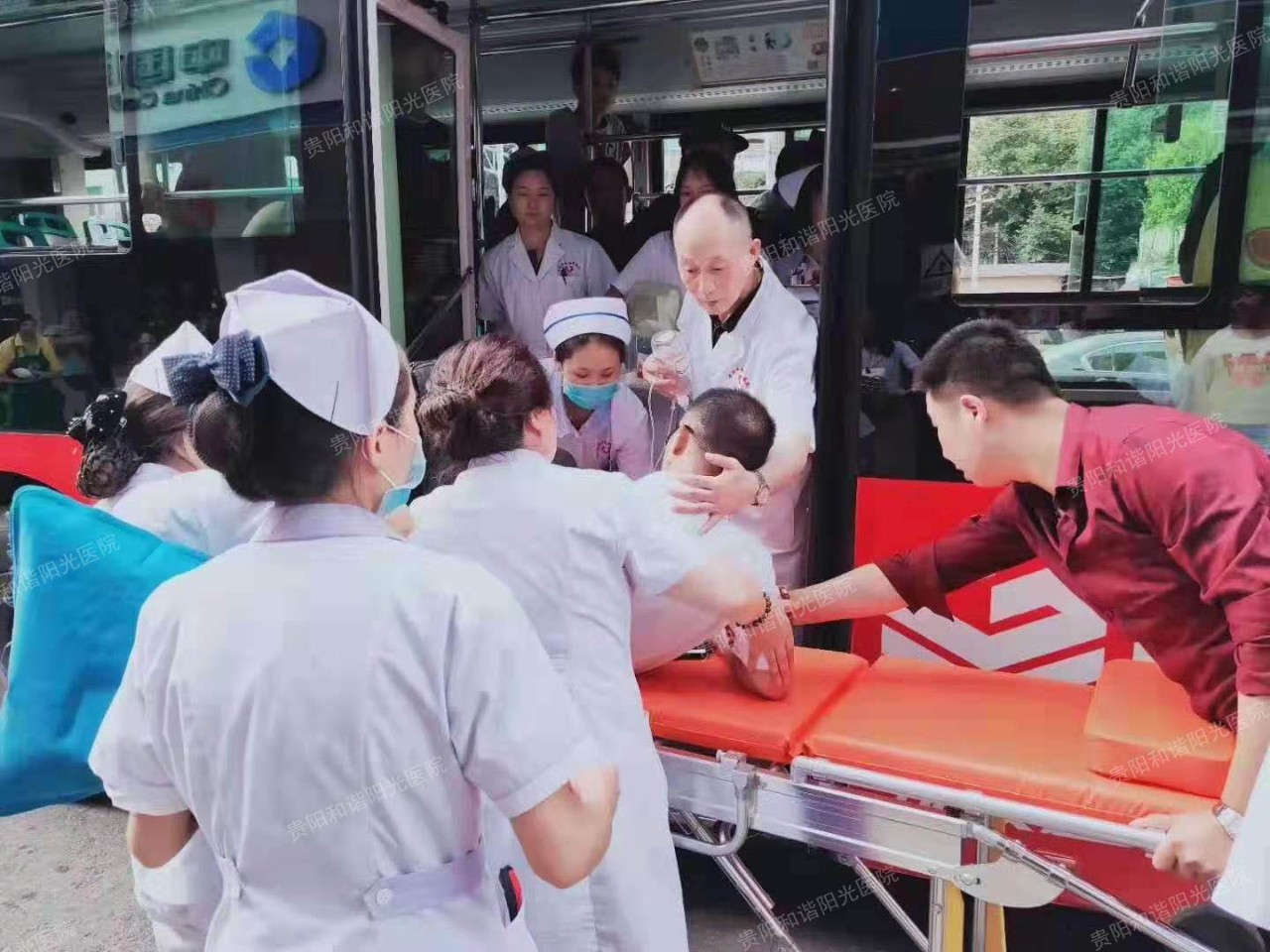 昨日(7月31日)下午17时50分左右,贵阳232路公交车司机杨师傅在行驶到三桥和谐阳光医院对面时,突然发现一老人在公交车上晕倒并伴有抽搐。在危急关头,杨师傅立即靠边停车,主动联系我院。