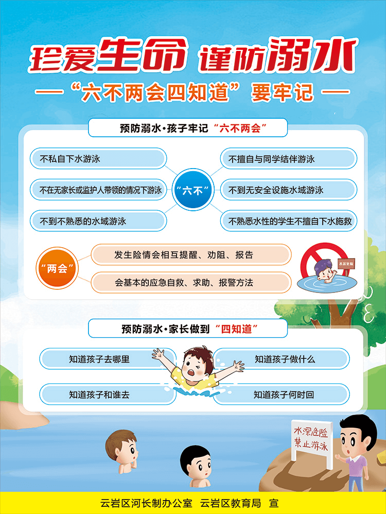3. 学习自救技能:积极创造条件,帮助孩子掌握游泳技能,教会孩子正确的溺水自救方法。